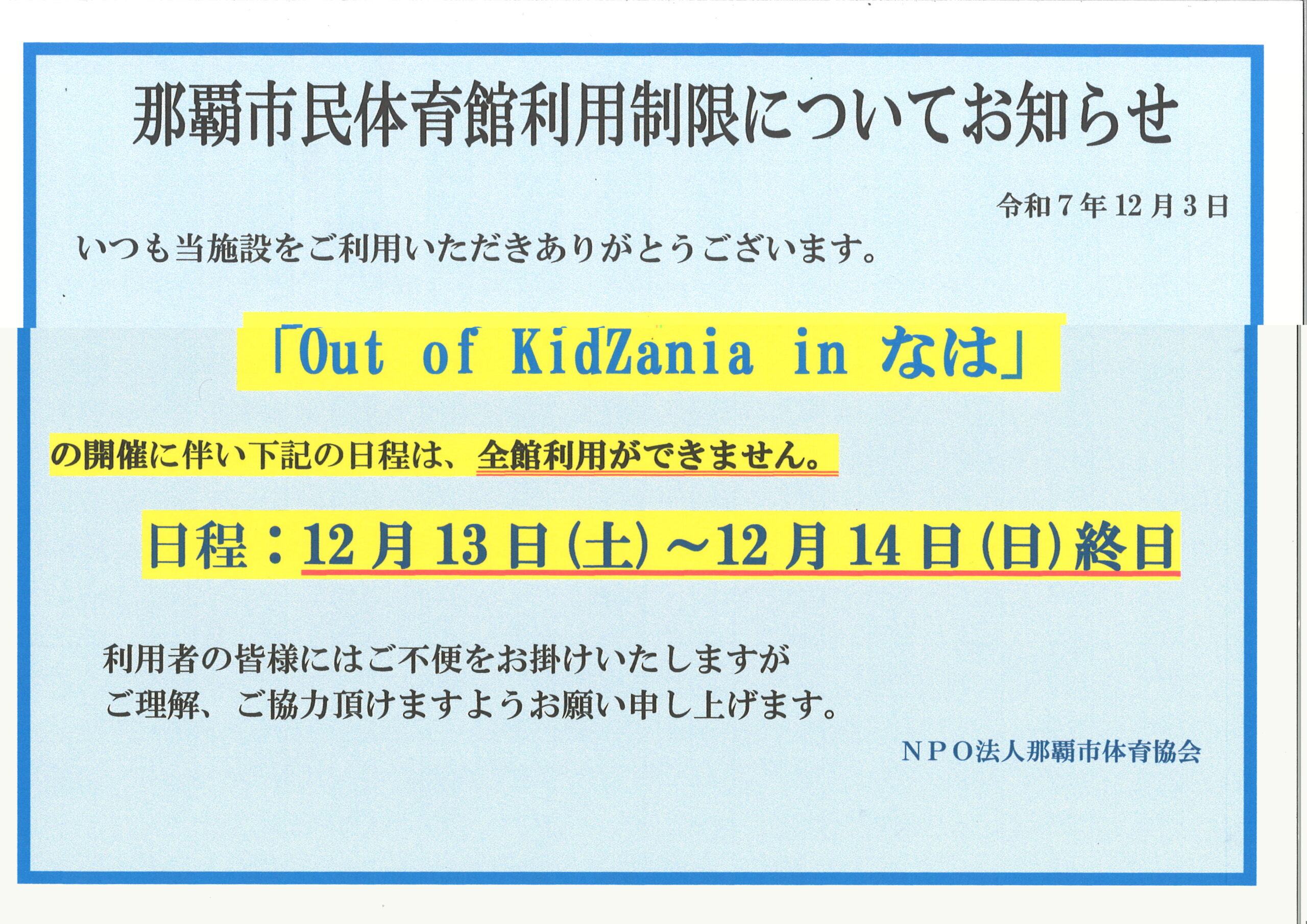 那覇市民体育館利用制限について12/13(土)~14(日)
