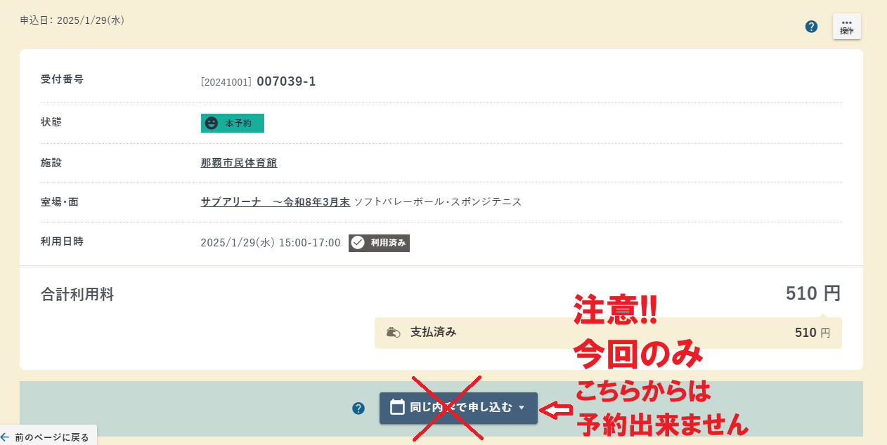 端末での予約操作にご不明な点等ございましたら、那覇市体育協会までお問い合わせください。
